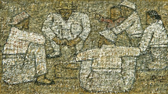 박수근의 가장 위대한 점은, 특별하지 않은 일상의 순간을 예술의 중심으로 끌어올렸다는 데 있다. 그는 카페나 살롱이 아닌, 장터와 빨래터에서 예술의 가치를 발견했다. 사람들은 웃지 않지만, 울지도 않는다. 그저 묵묵히 살아가는 모습 속에서 잔잔한 감동과 인간의 아름다움을 이끌어낸 것이다.