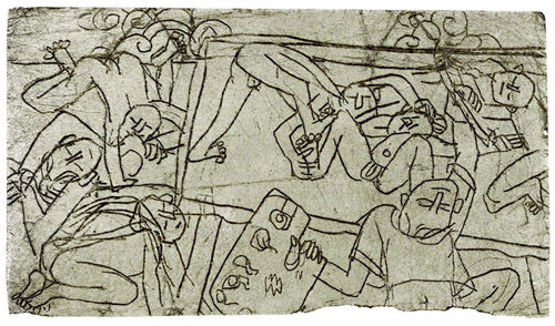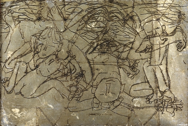 이중섭의 또 다른 대표작은 '은지화'이다. 일본에 있는 아내와 자녀들에게 보내기 위해 음식 포장지에 그림을 그려 보냈던 이 작품들은, 단순한 가족의 편지를 넘어선 예술적 유산으로 평가받고 있다. 당시 가난했던 그에게 캔버스는 사치였고, 그는 은박지, 담배갑, 골판지 등 ‘쓰레기 같은 것들’을 예술로 변환했다.